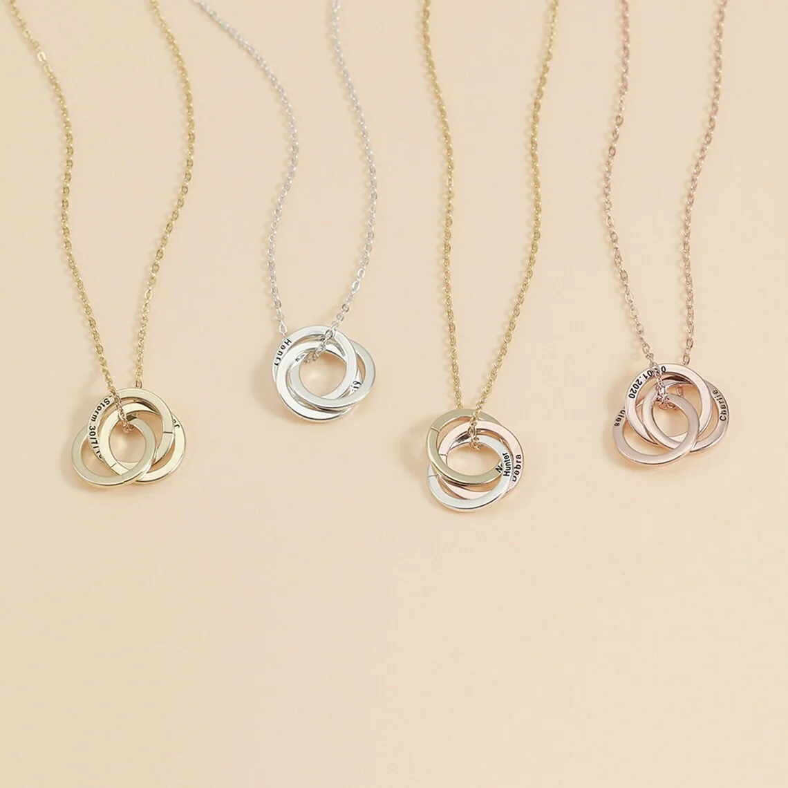 Personalized Custom Engraved Family Name Circle Necklace 3 Colors Stainless Steel Pendant Gift for Mother's Day
