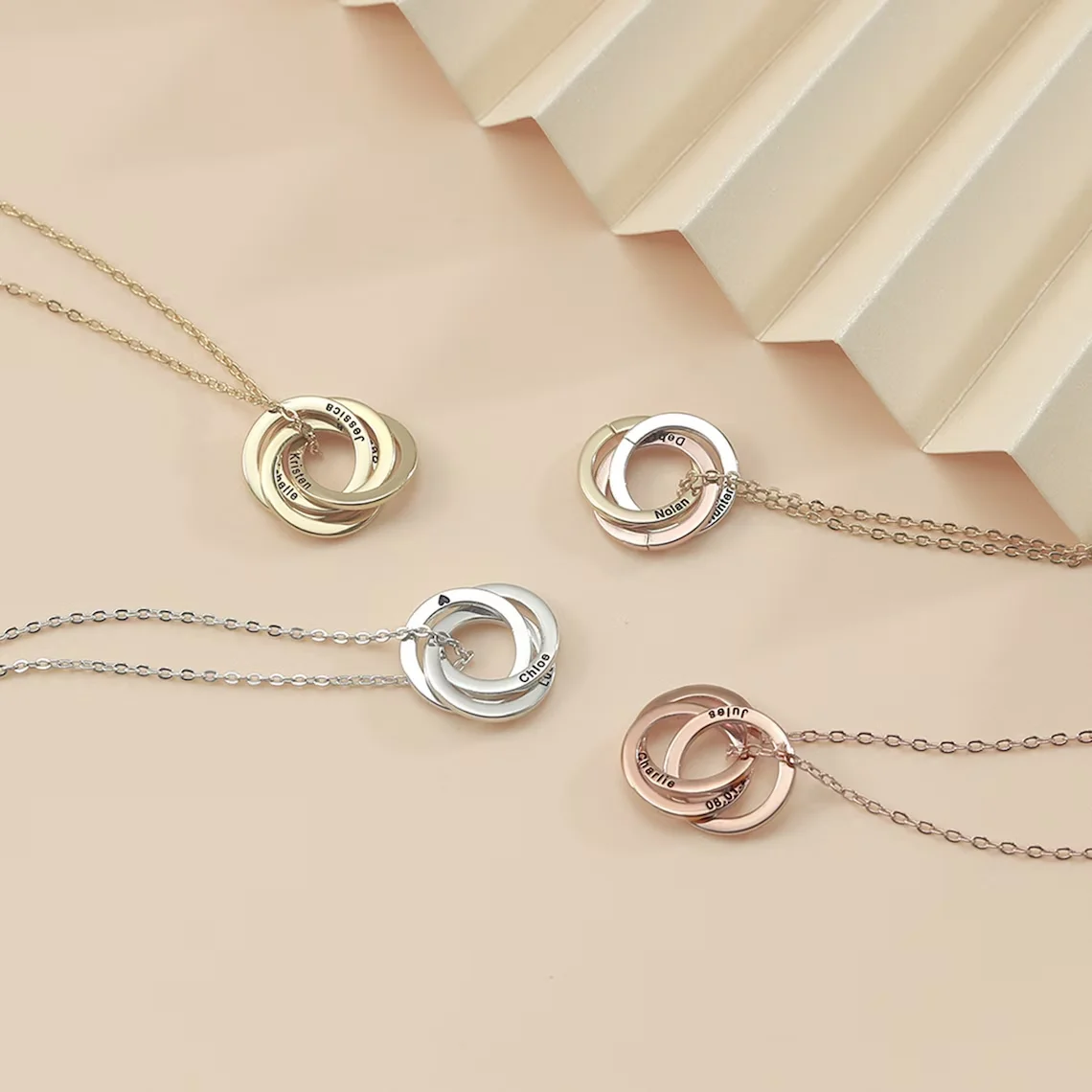 Necklace: Direct sales/wholesale,Multi-Name Necklace,Print/Bright surface/Fashion,Personalized Circle Necklace,Engraved Children Name Necklace,Custom Linked Necklace,Family Name Necklace