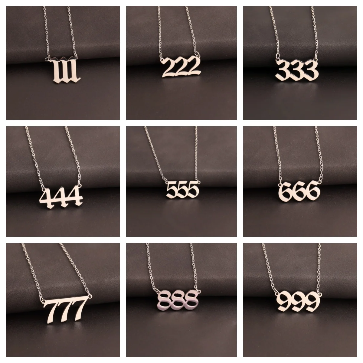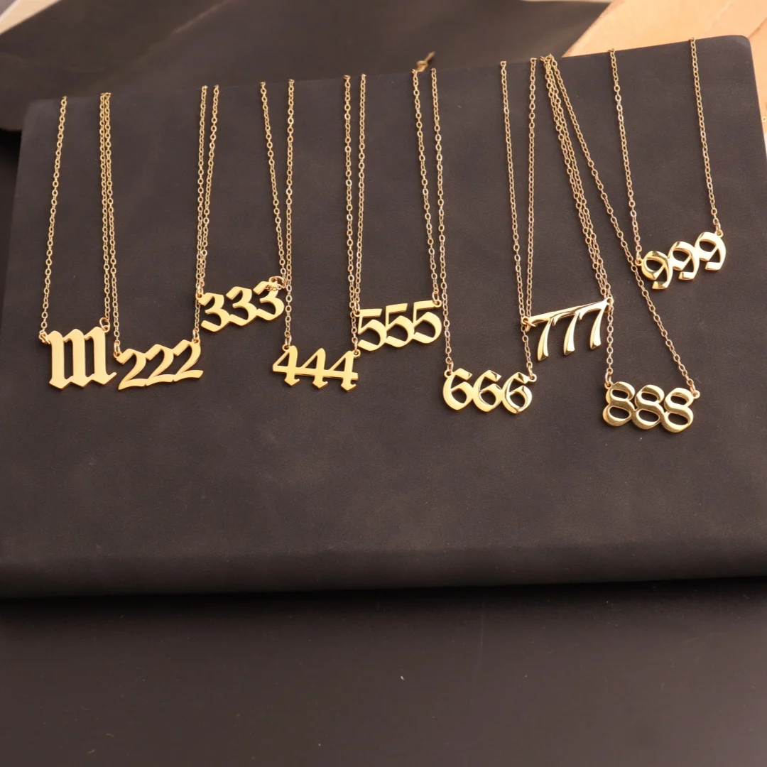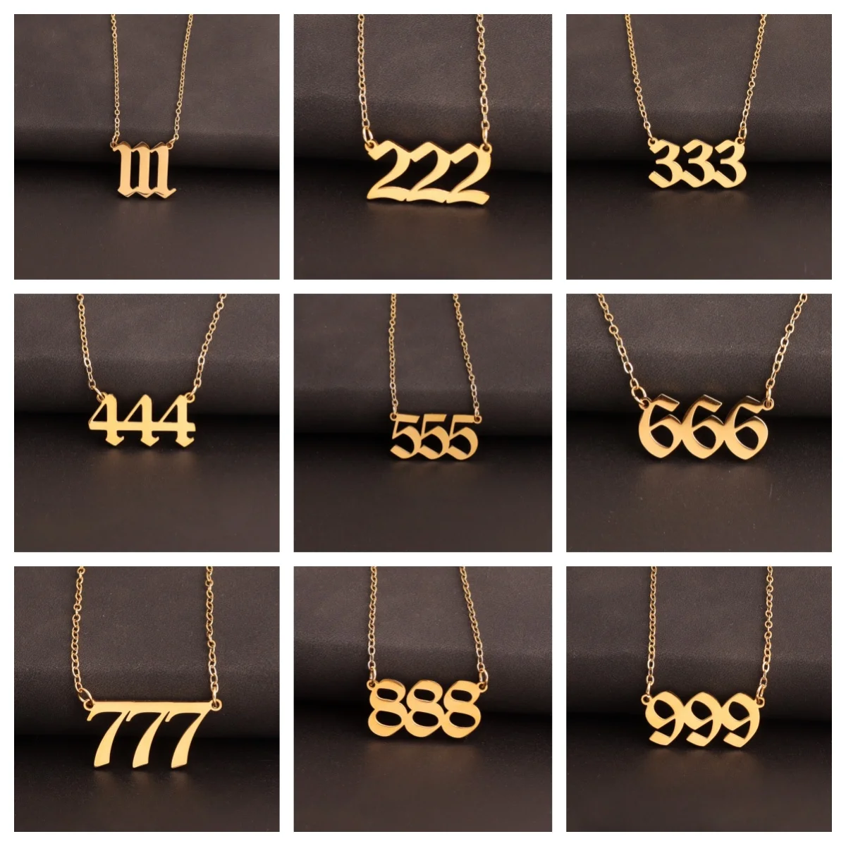 Personalized Gold Angel Number Necklace Lucky Number 111 222 333 444 555 666 777 888 999 Silver Number Pendant Gift for Her